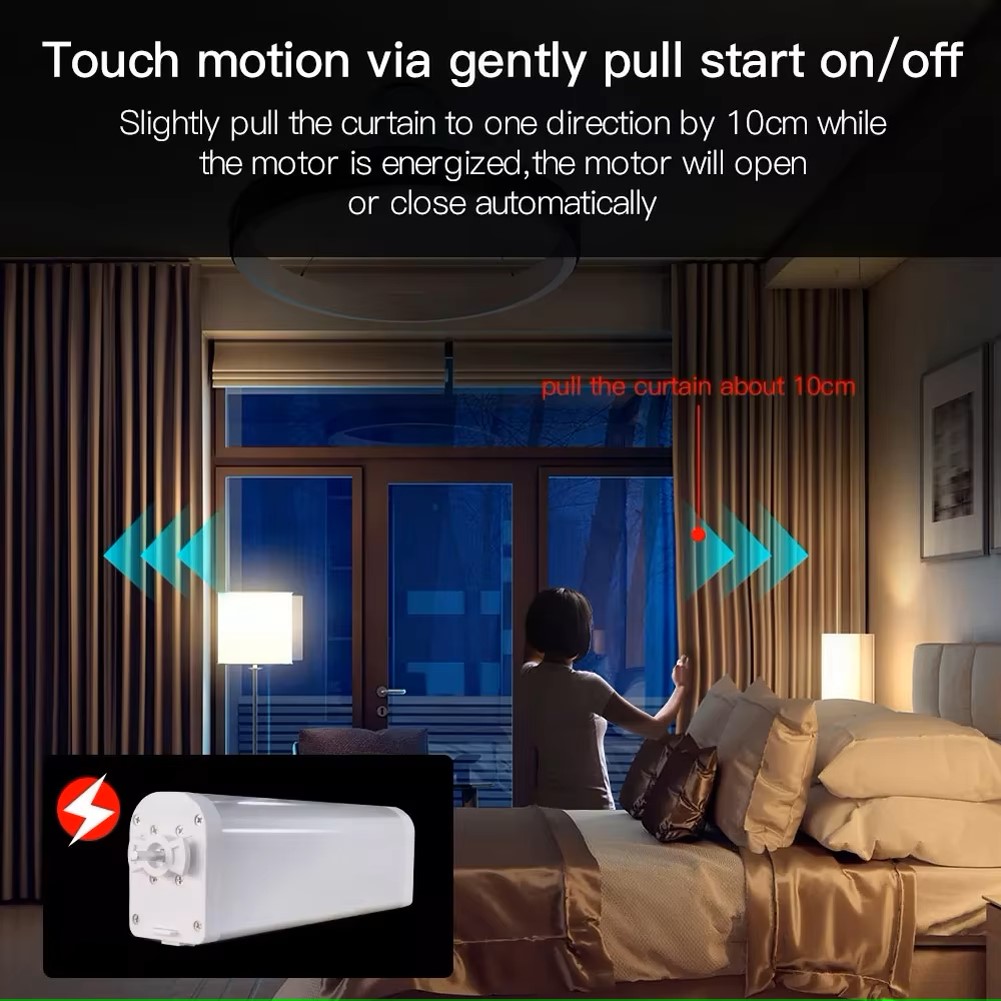 - Touch motion start: Gently pull the curtain, and the smart motor takes over – smooth, smart, and seamless